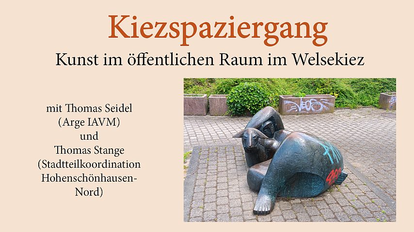 Kunst am Bau und im öffentlichen Raum im Welsekiez mit Thomas Seidel (Arge IAVM) und Thomas Stange (Stadtteilkoordination Hohenschönhausen-Nord) Der Spaziergang findet statt im Rahmen des Projektes 40 Jahre Bezirk Hohenschönhausen und soll einzelne Artefakte des Kunst am Bau und im öffentlichen Raum am Beispiel des Welsekiezes (auch Uckermärkisches Viertel) in Neu-Hohenschönhausen und deren Entstehungsgeschichte...