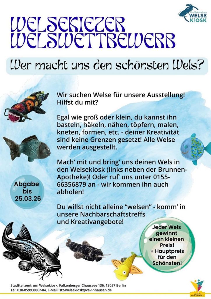 Wir suchen u.a. interessierte Ehrenamtliche für verschiedene Formate wie Hausaufgabenhilfe, Kreativkurse (nähen, stricken, malen…), Spaziergangsgruppen, Reparaturhilfe, Unterstützung bei Veranstaltungen, etc. Du willst dich engagieren und den Welsekiez mitgestalten? Dann melde dich gern bei uns – auch mit eigenen Ideen! Wir freuen uns auf dich.