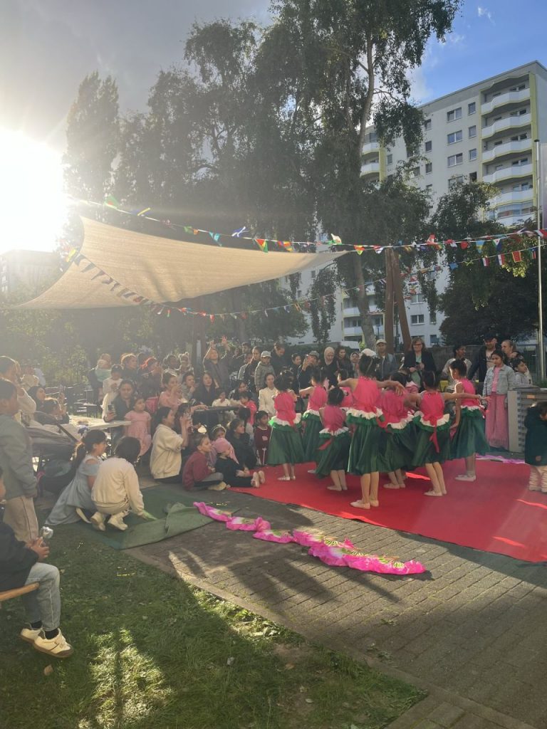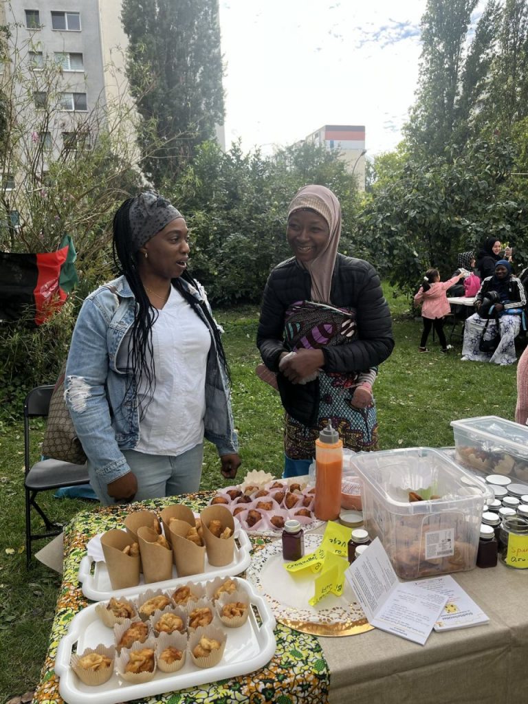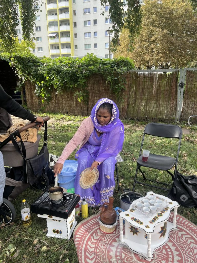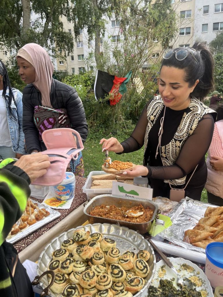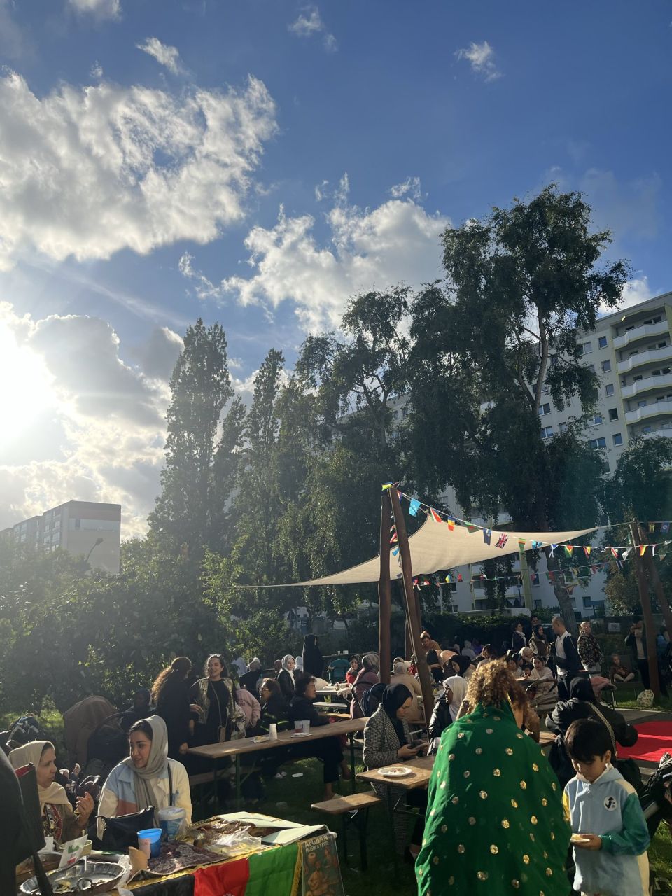 Das Fest bot eine schöne Gelegenheit, Menschen aus verschiedenen Kulturen zusammenzubringen und den Austausch zwischen Nachbar*innen zu fördern. Im Rahmen der Veranstaltung stellten sich die Stadtteilmütter vor und verschiedene Migrationsprojekte aus dem Stadtteil präsentierten ihre Arbeit.